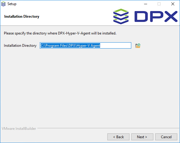 - In the Installation Directory step, specify the directory where the DPX Hyper-V Agent will be installed. The default directory is usually