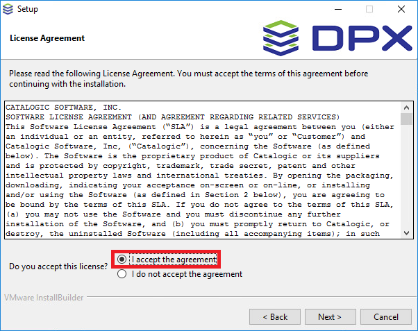 - In the License Agreement step, read the entire License Agreement carefully. You must accept the terms to continue. Click Next.