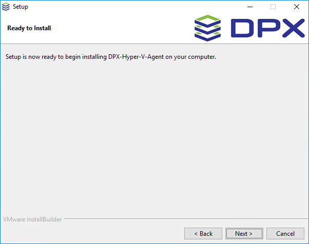- The wizard is now ready to install the DPX Hyper-V Agent on your computer. Click Next to begin the installation.