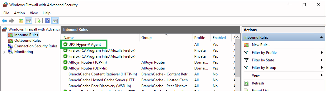 --port– port number (default: 50881)--installDir– custom installation directory (default: C:\Program Files\DPX\Hyper-V Agent)--firewallRuleName– custom name for firewall rule added by the installer (default: DPX Hyper-V Agent)
