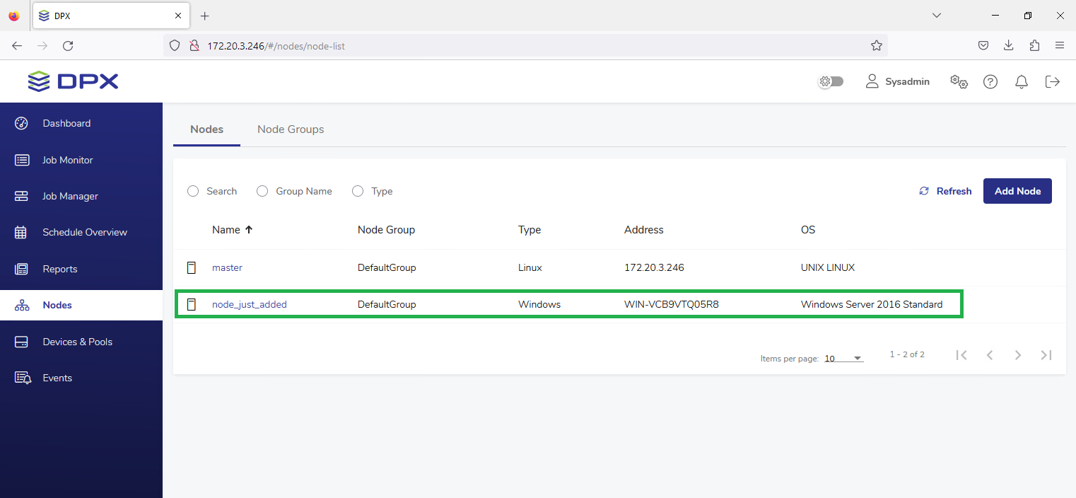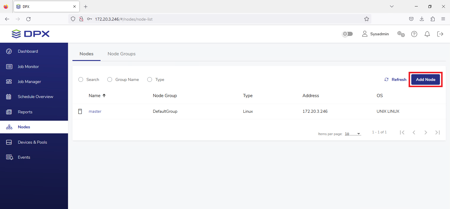 Select the node Type: DPX Client. For other node types, see Adding Other Node Types to the Master Server.