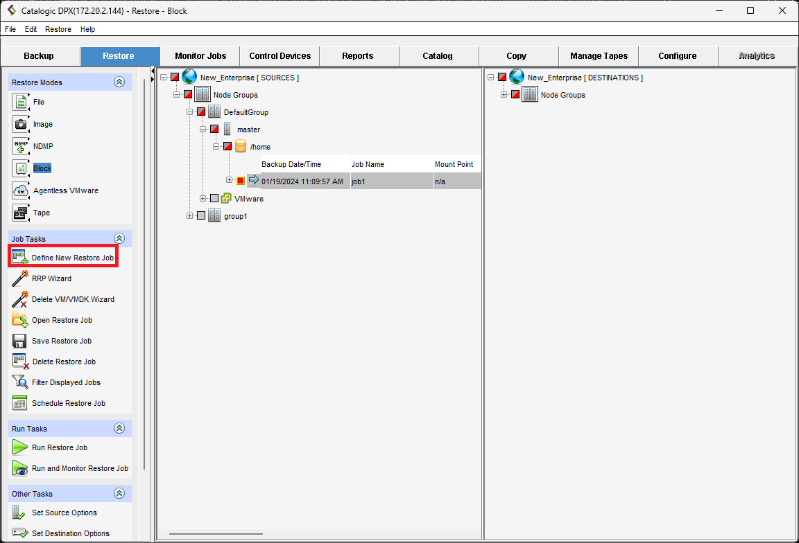 Creating a Block Restore Job