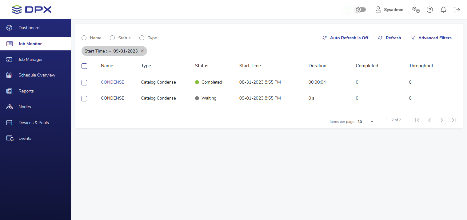 Job Monitor view with one filter applied.