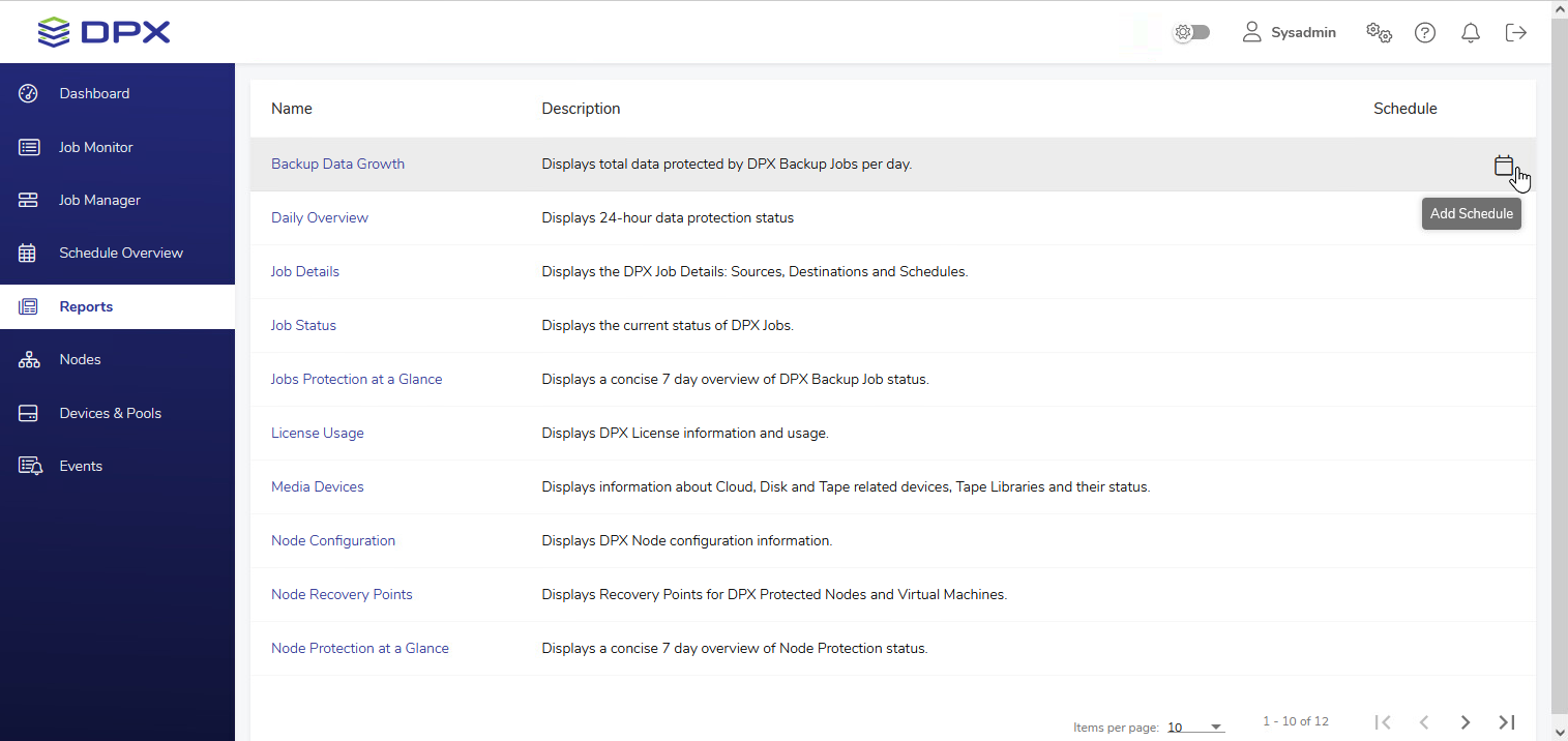 - Hover over the record of a selected report to show the calendar icon and the Add Schedule tooltip (see image above).