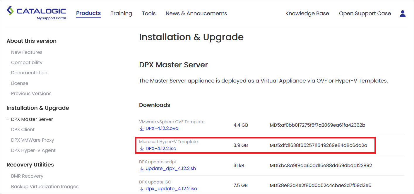 - Download the .ISO file from the Catalogic MySupport page: