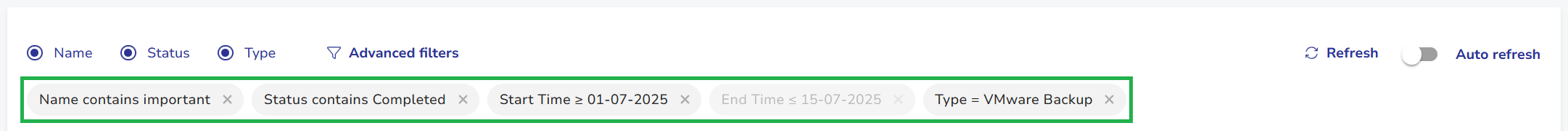 - Type filter is a drop-down list of job Types from among those present in the Job Manager.
