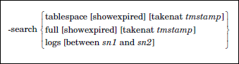 Queries the server for DB2 objects. The syntax for -search is: