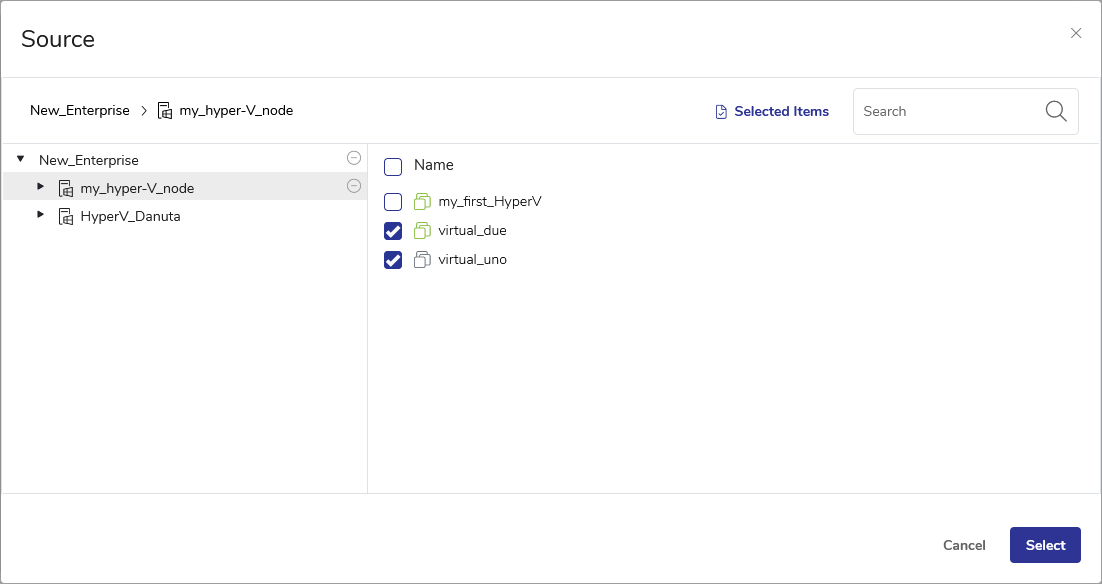 You may select an entire Hyper-V node or individual virtual machines within the node.