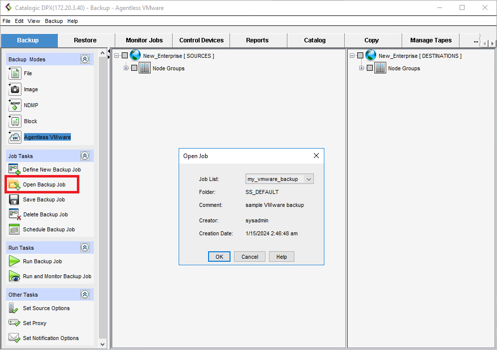 - Under Job Tasks in the side panel, select Open Backup Job.