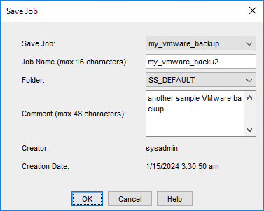 Editing a VMware backup job allows you to change some parameters of an already defined job (Save), or to create a new job based on the definition of an existing one (Save as…). The procedure is similar to creating a backup job from scratch.