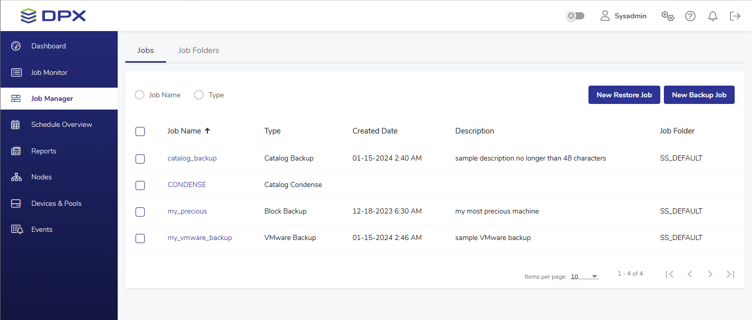 - In the main web interface view, go to Job Manager in the sidebar. Then select the VMware backup job you want to edit from the list.