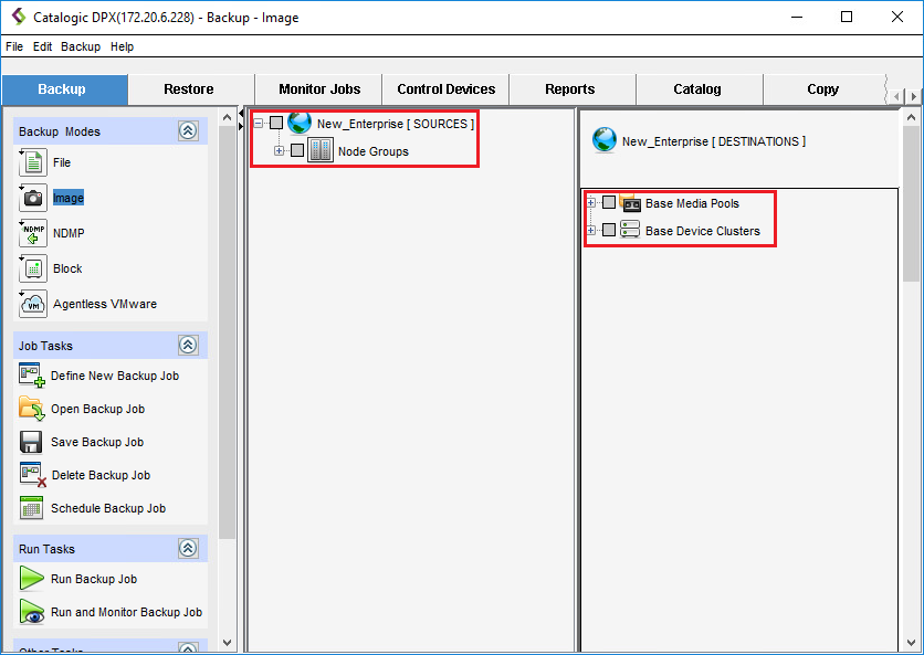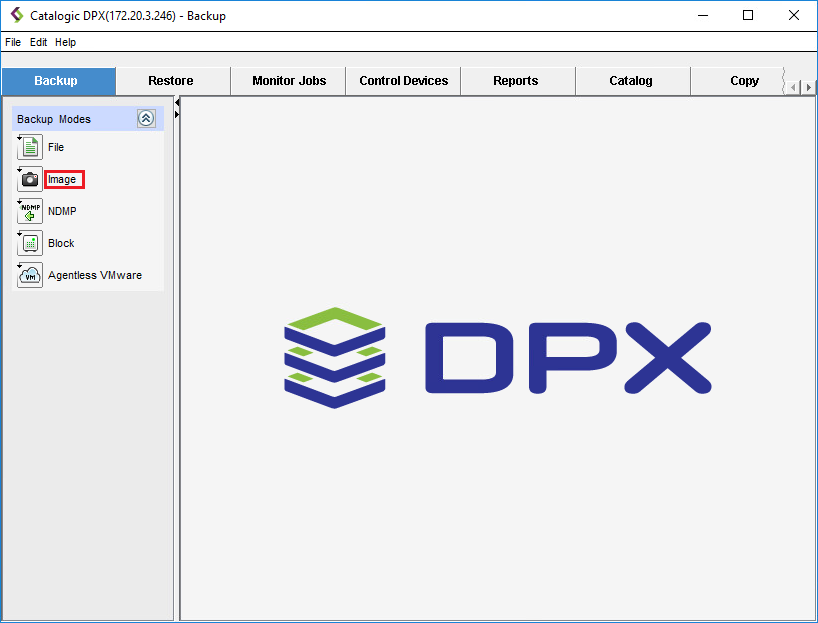 In Catalogic DPX version 4.14, only the desktop interface supports Image backups.