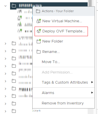 - Right-click on the folder where you want to deploy your virtual machine.