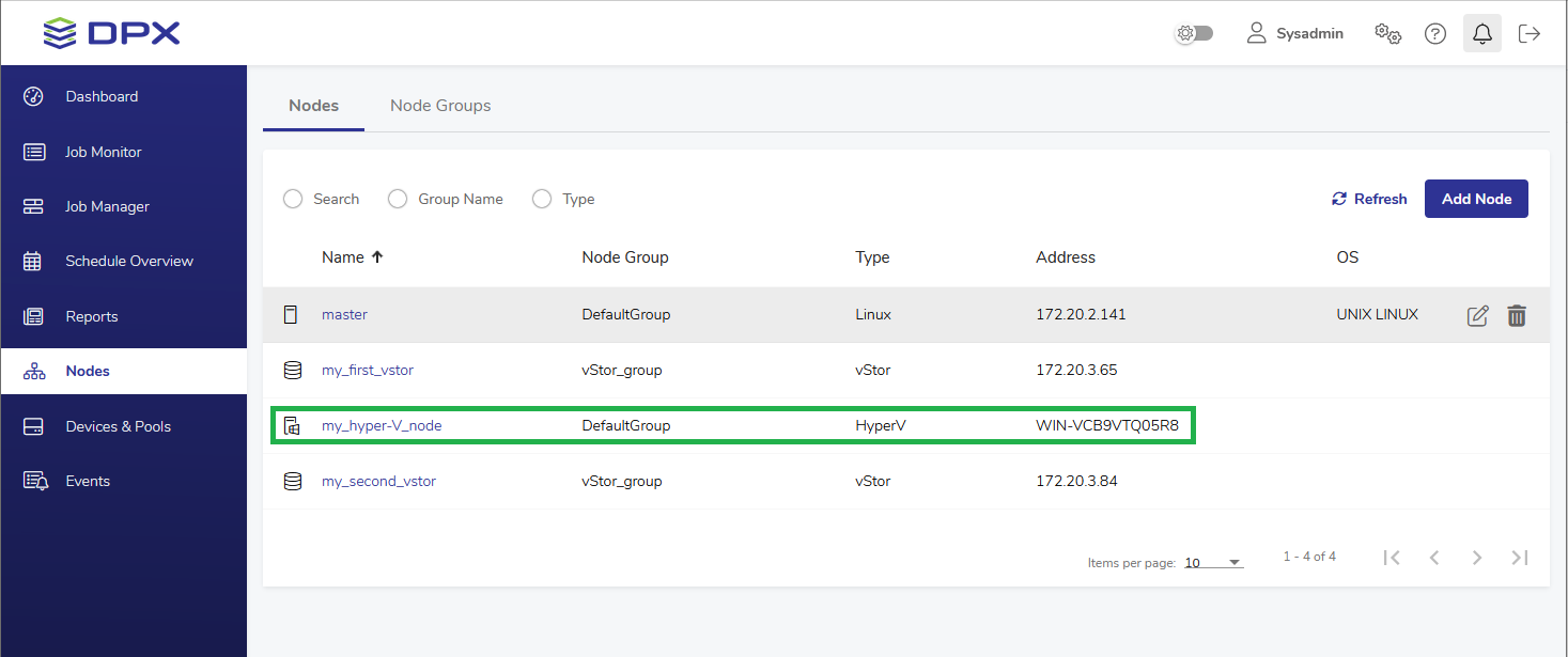 Before adding a Hyper-V Host as a node to DPX, make sure you have a Hyper-V host with a DPX Hyper-V Agent installed. For details, see DPX Hyper-V Agent.