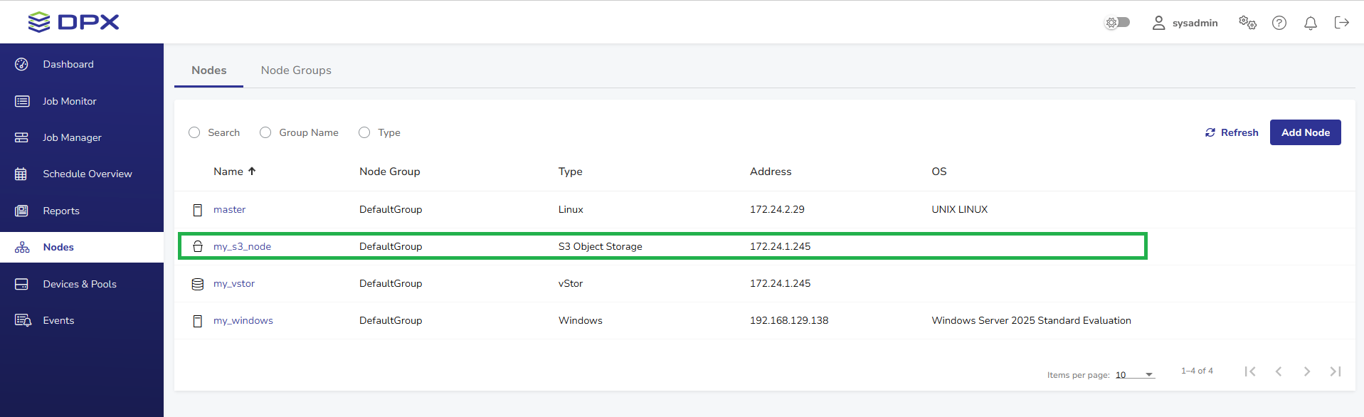The procedure below describes adding an S3 Object Storage as a node to the DPX Master Server.