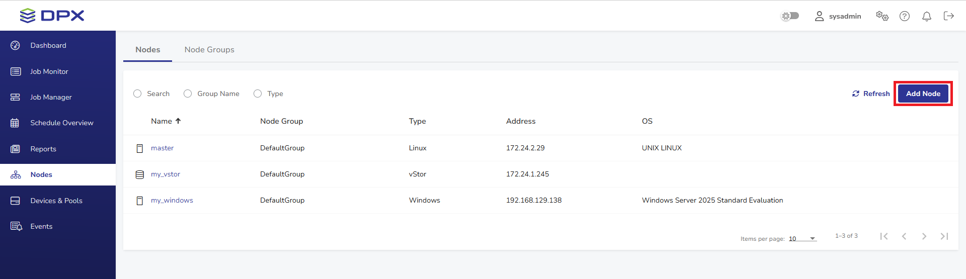 - Click the Add Node button in the upper right corner to open the Add Node dialog.