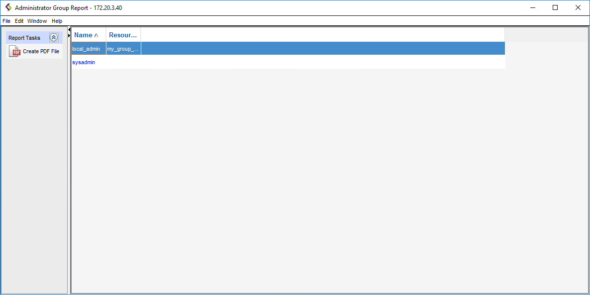 - From the menu bar of the Configure Administrators window, select Administrators > Administrator Group Report.