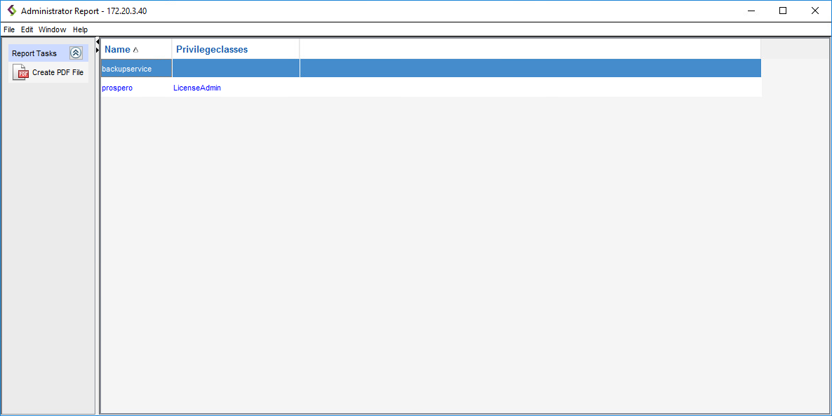 - From the menu bar of the Configure Administrators window, select Administrators > Administrator Report.