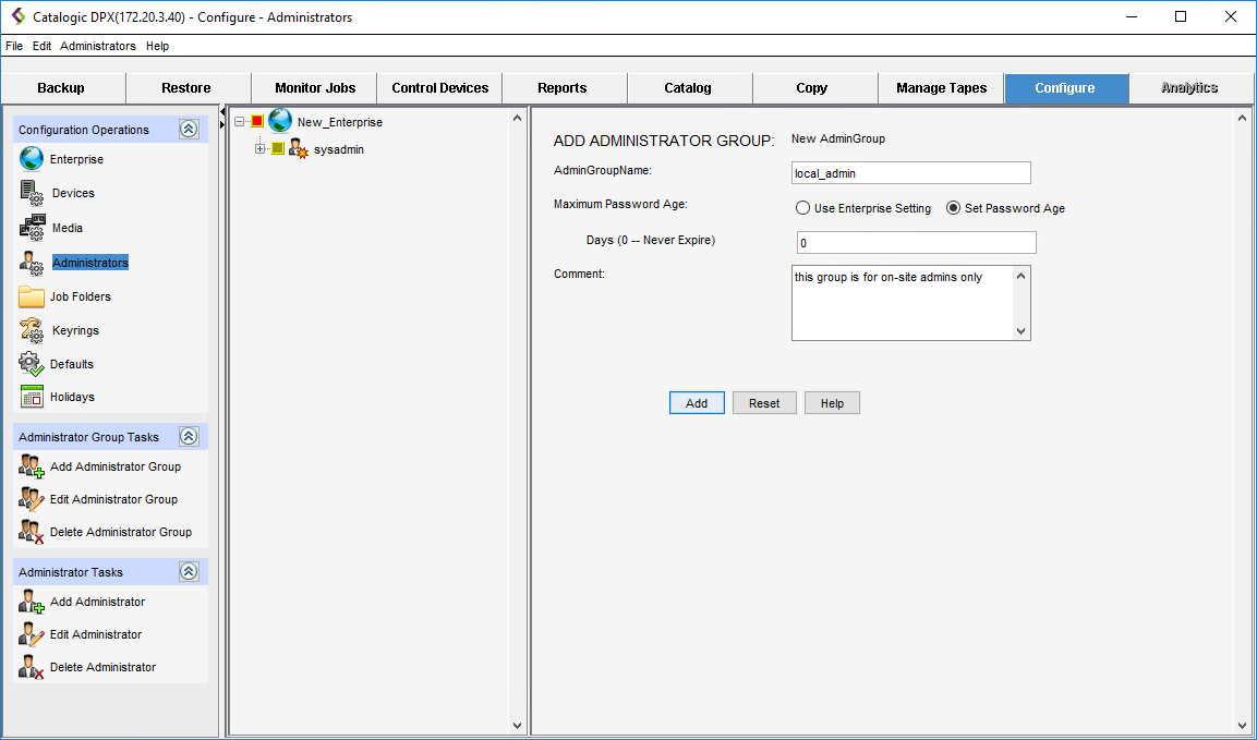 - From the menu toolbar, select Administrators > Add Administrator Group.