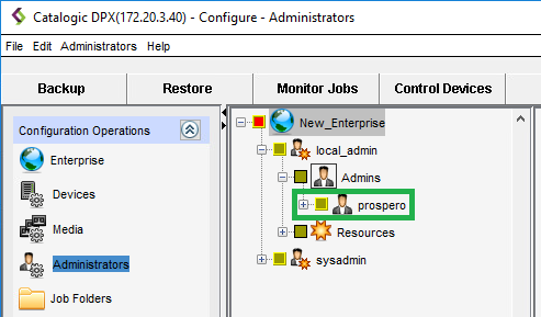 Select Add. The new administrator appears in the Administrator tree in the left pane. You might need to refresh the view by clicking Administrators in the task panel.\