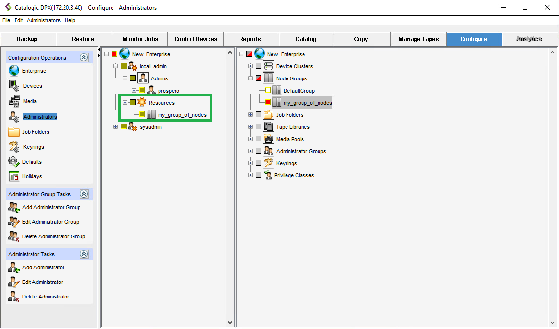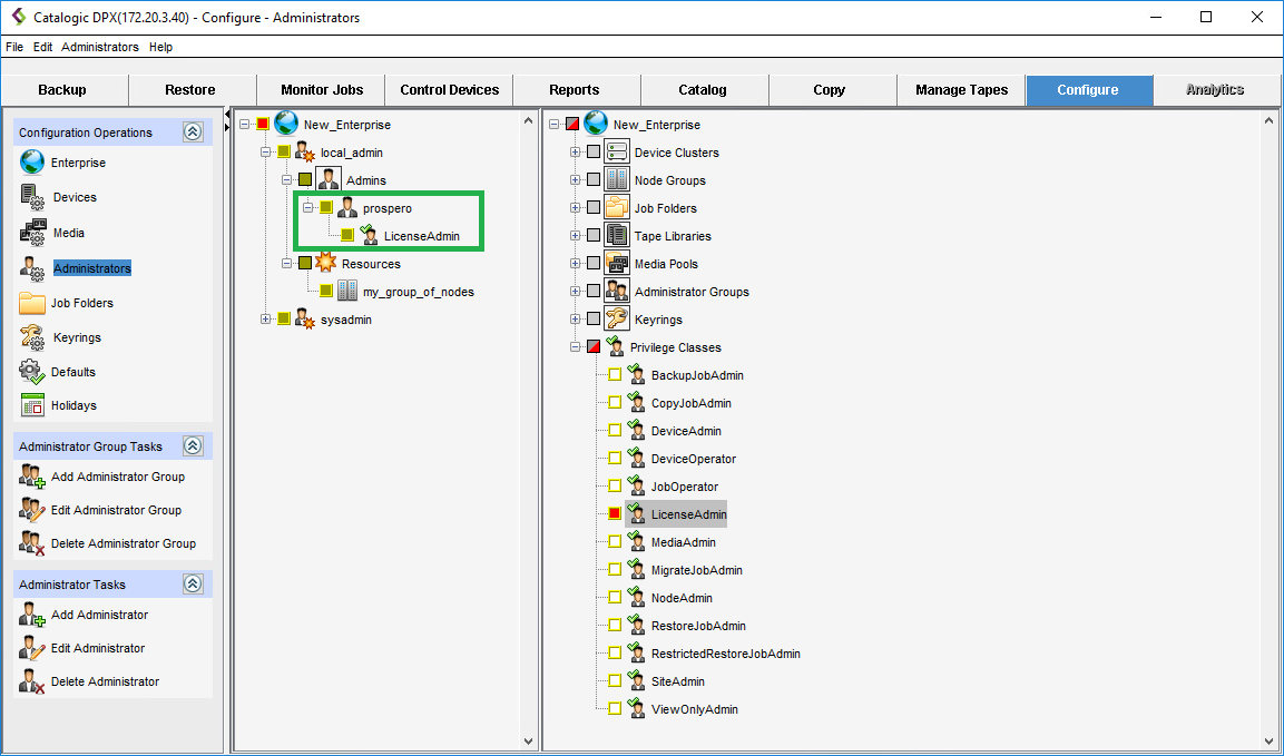 Configure Administrators allows you to add new administrator groups to fulfill limited or broad functions.