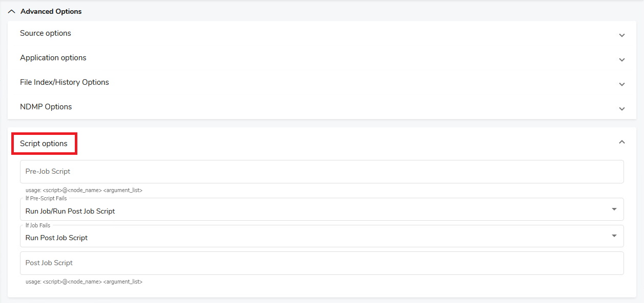 Skip Post-Job ScriptSkips the post-job script if the job fails.