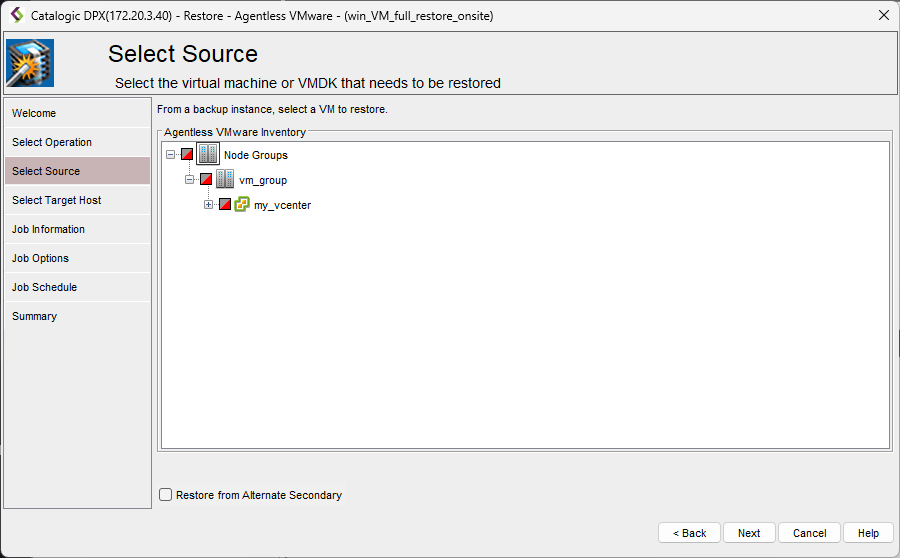 Creating an Agentless VMware Restore Job