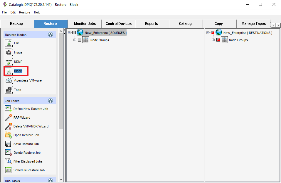 1. To run the job, go to Run Tasks in the Task Panel (scroll down if necessary) and click Run Restore Job.