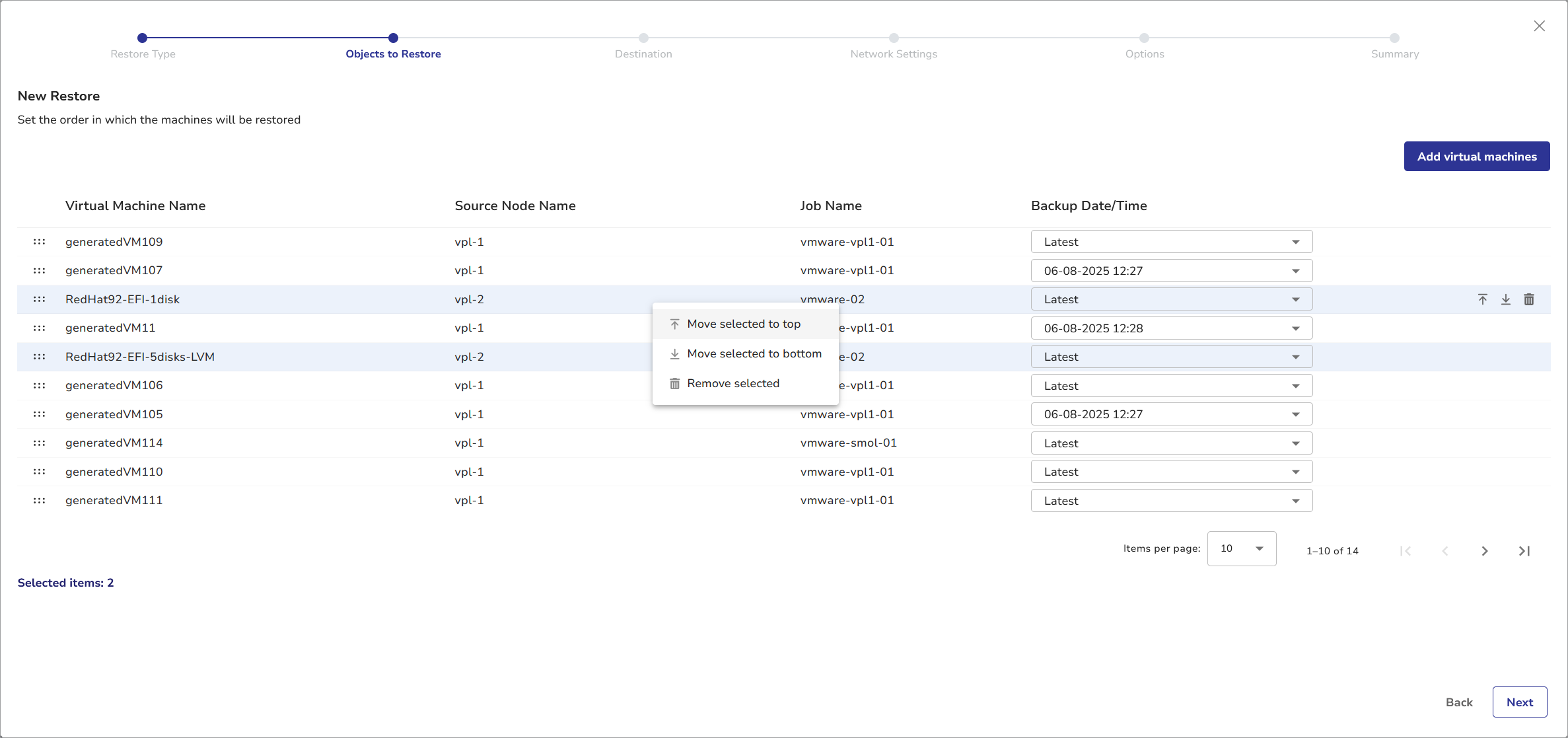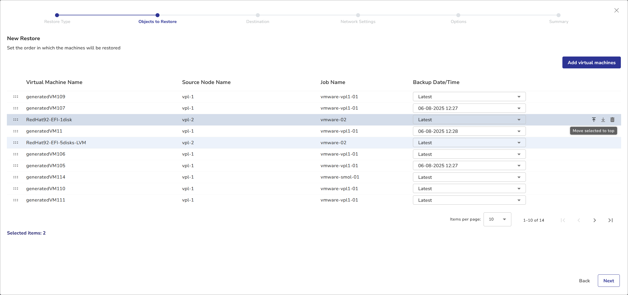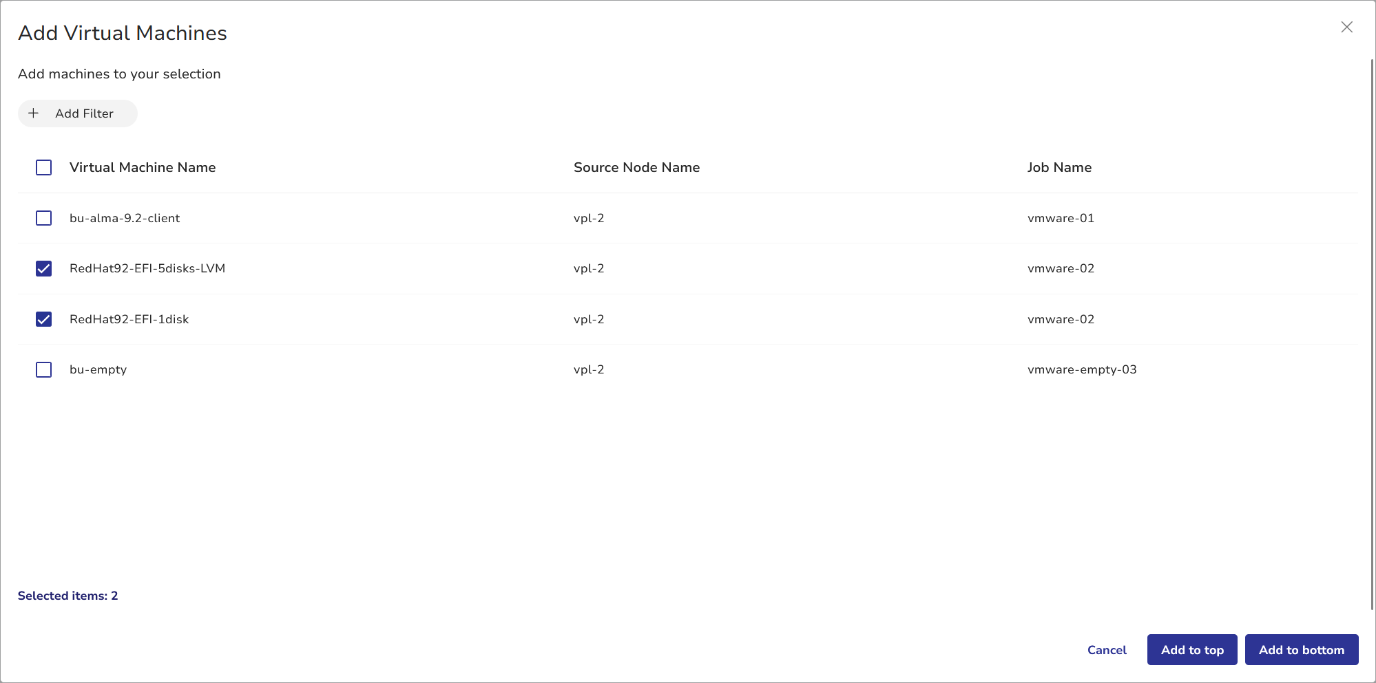 - Click Add to top to place the newly selected VMs before those previously added.