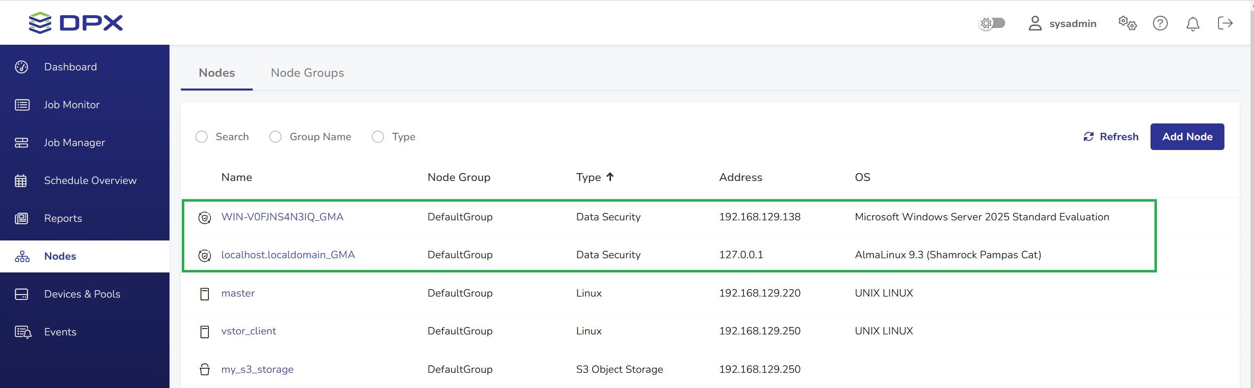 Once you have successfully installed the GuardMode Agent, you will be able to see the nodes listed under the Nodes menu in the DPX web interface: