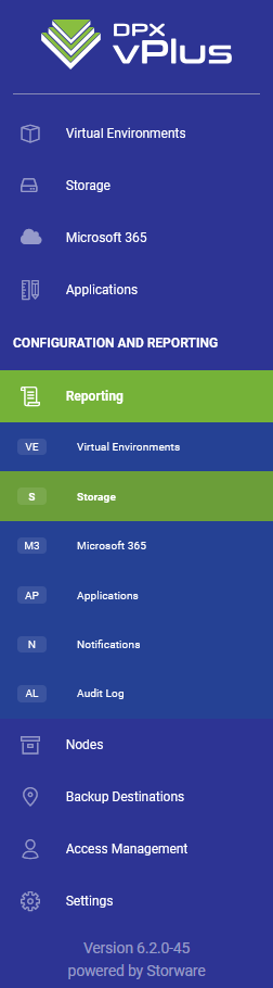 You can also open the storage reports in the reporting section using the left menu.