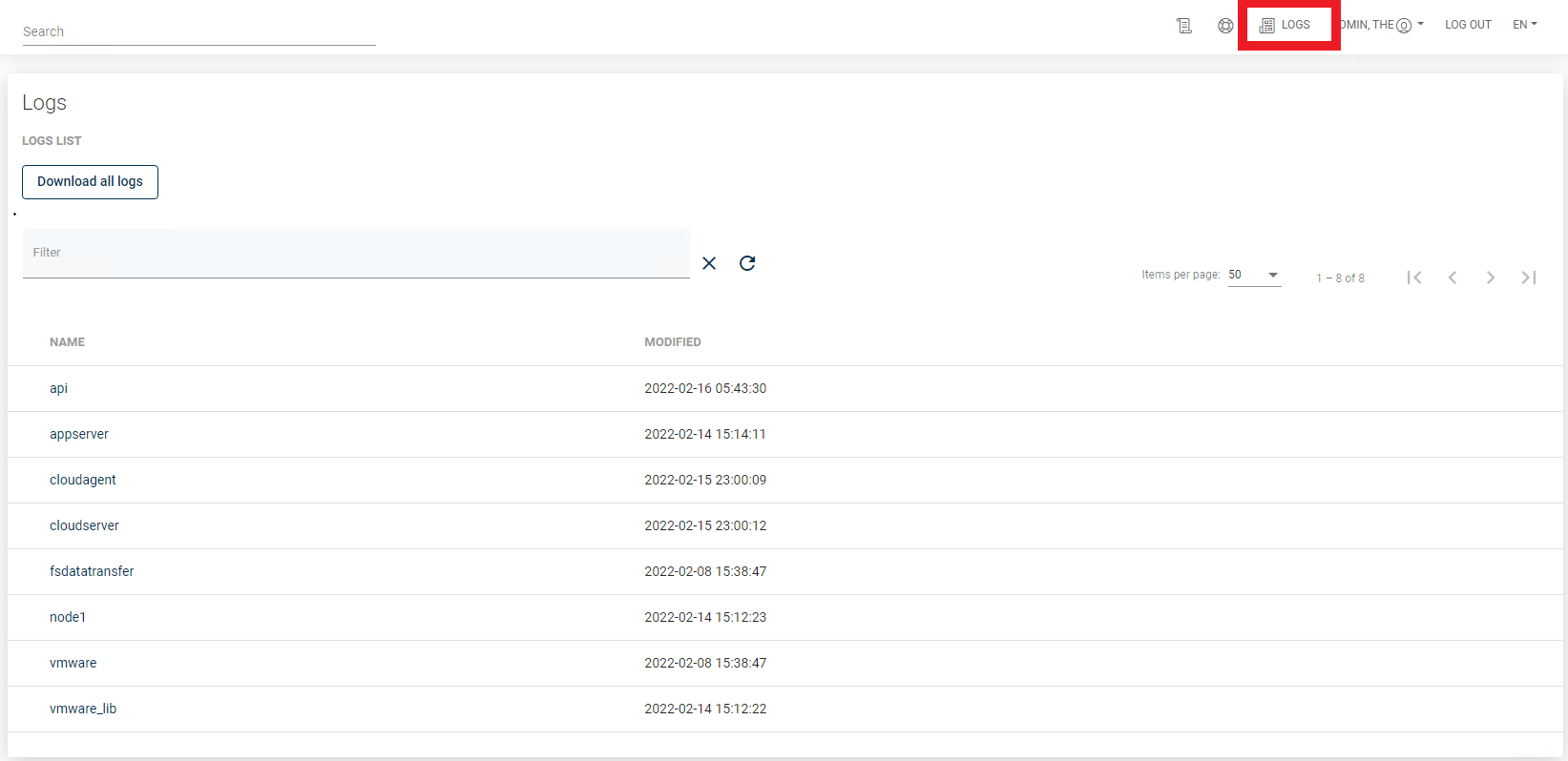 • appserver which has all messages coming from the application server - which hosts web UI and API