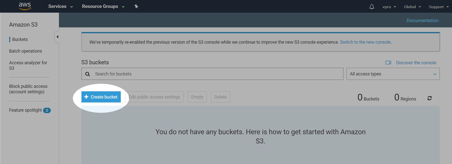 Now create a new bucket for your backups: