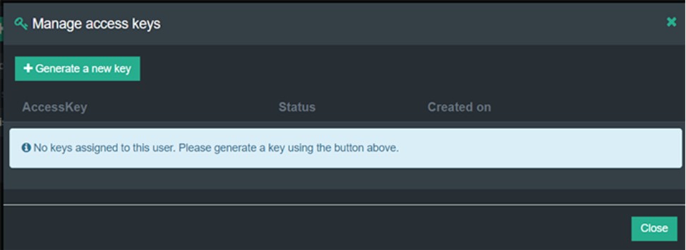 Click on Proceed to generate the user's AccessKey and SecretAccessKey.