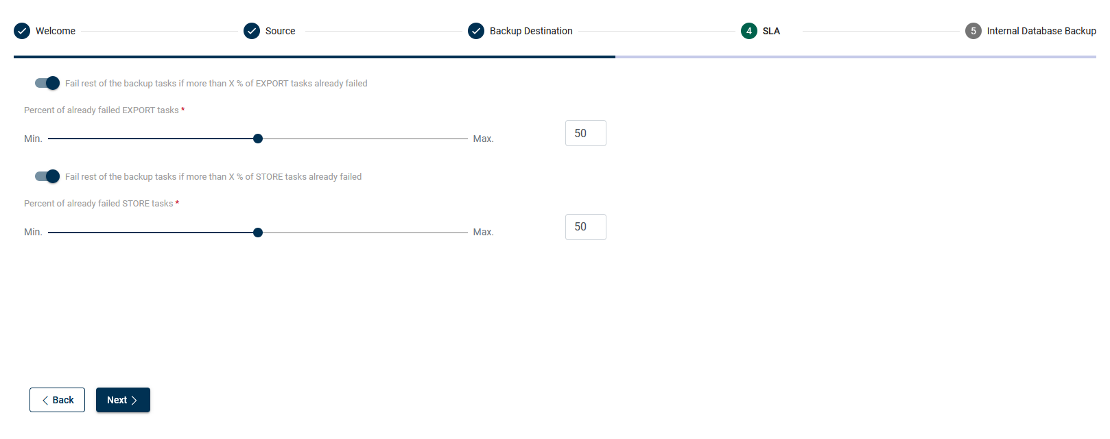 - Fail rest of the backup tasks if more than X % of EXPORT tasks already failed