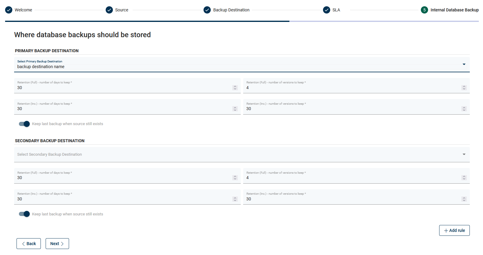 Finish this step by going to the next section or adding another backup destination.