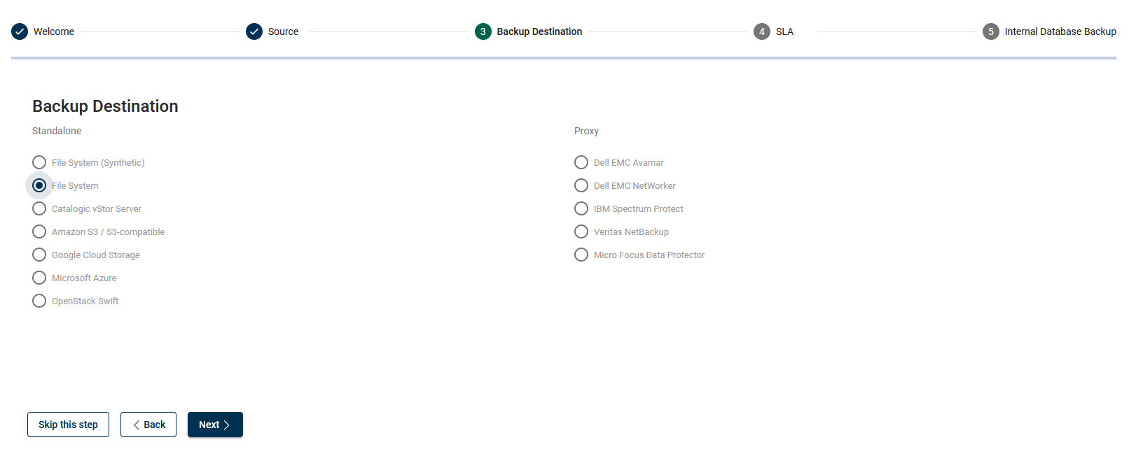 Choose a backup destination (we used File System as an example).