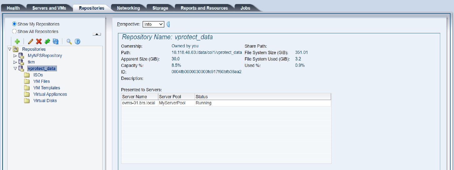 - The directory under / vprotect_data needs to be the same name as the OVS server pool name