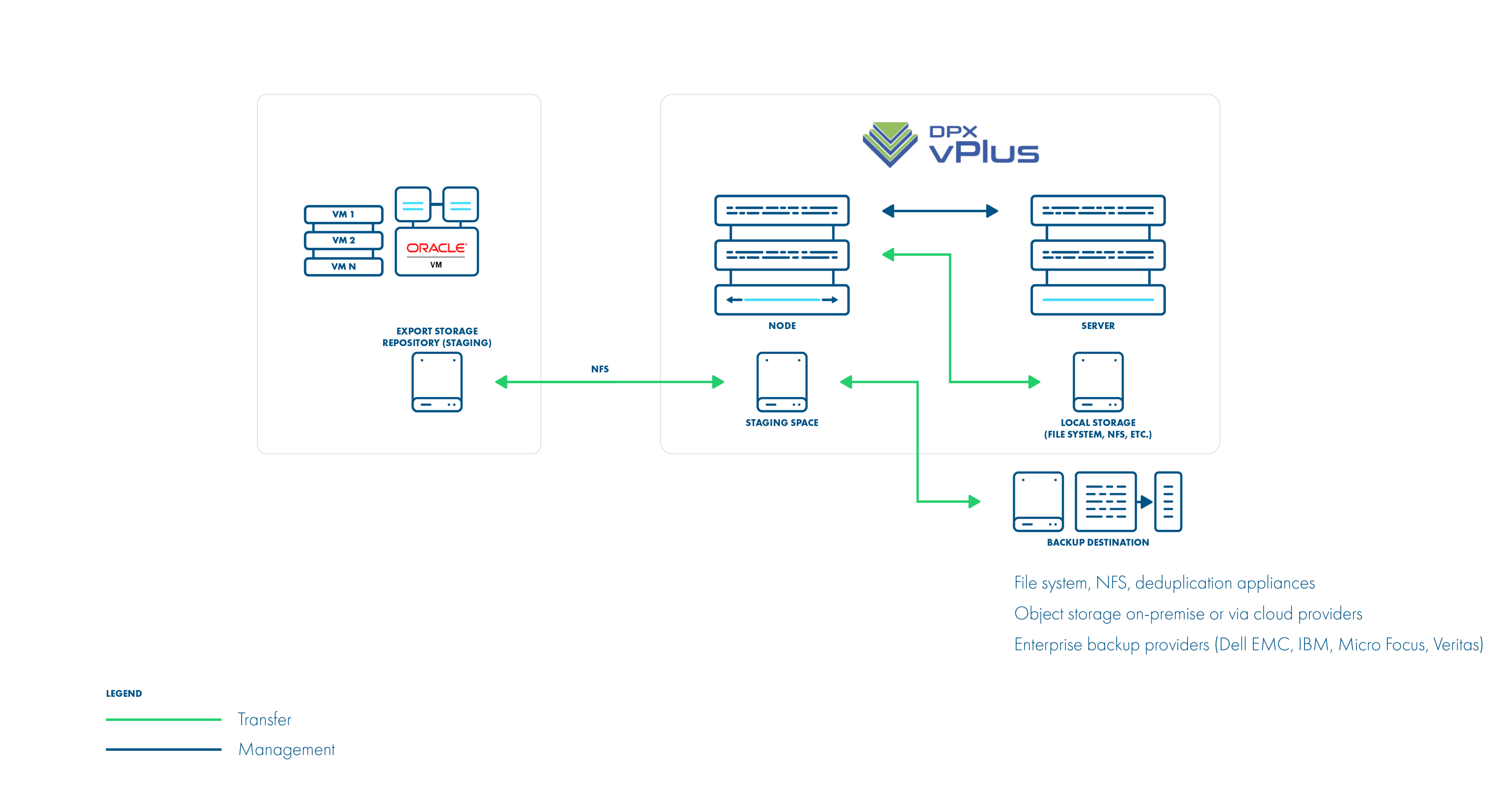 - data + metadata exported by the manager to the vPlus staging space (visible as the export Storage Repository in OVM)