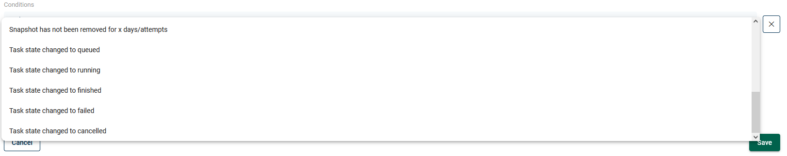 For some conditions, you will need to provide more information, for example, choose TaskType.