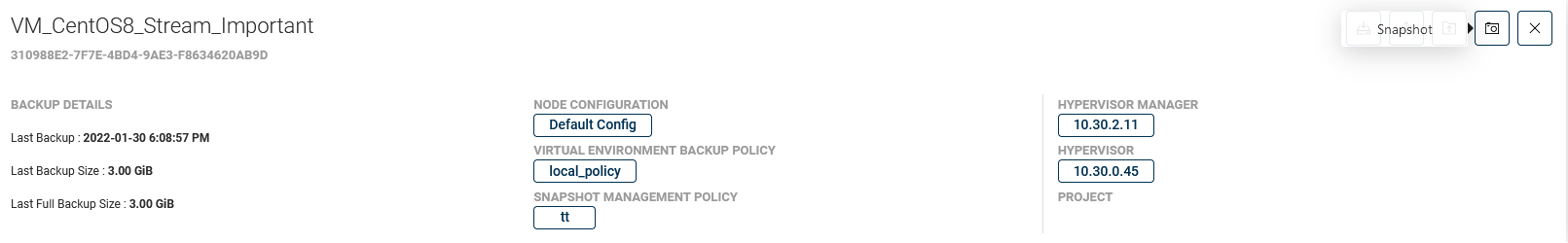 Once VM is assigned, you'll have new buttons that allow on-demand operations. After opening the virtual machine details page, you can see the camera button in the upper right corner.