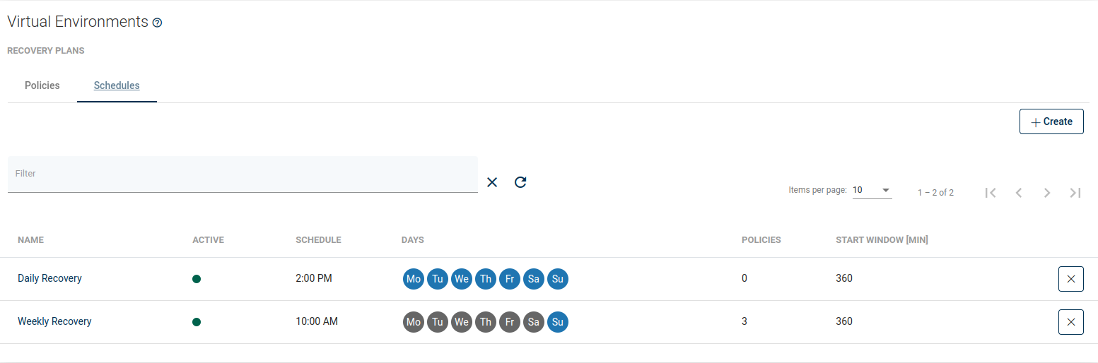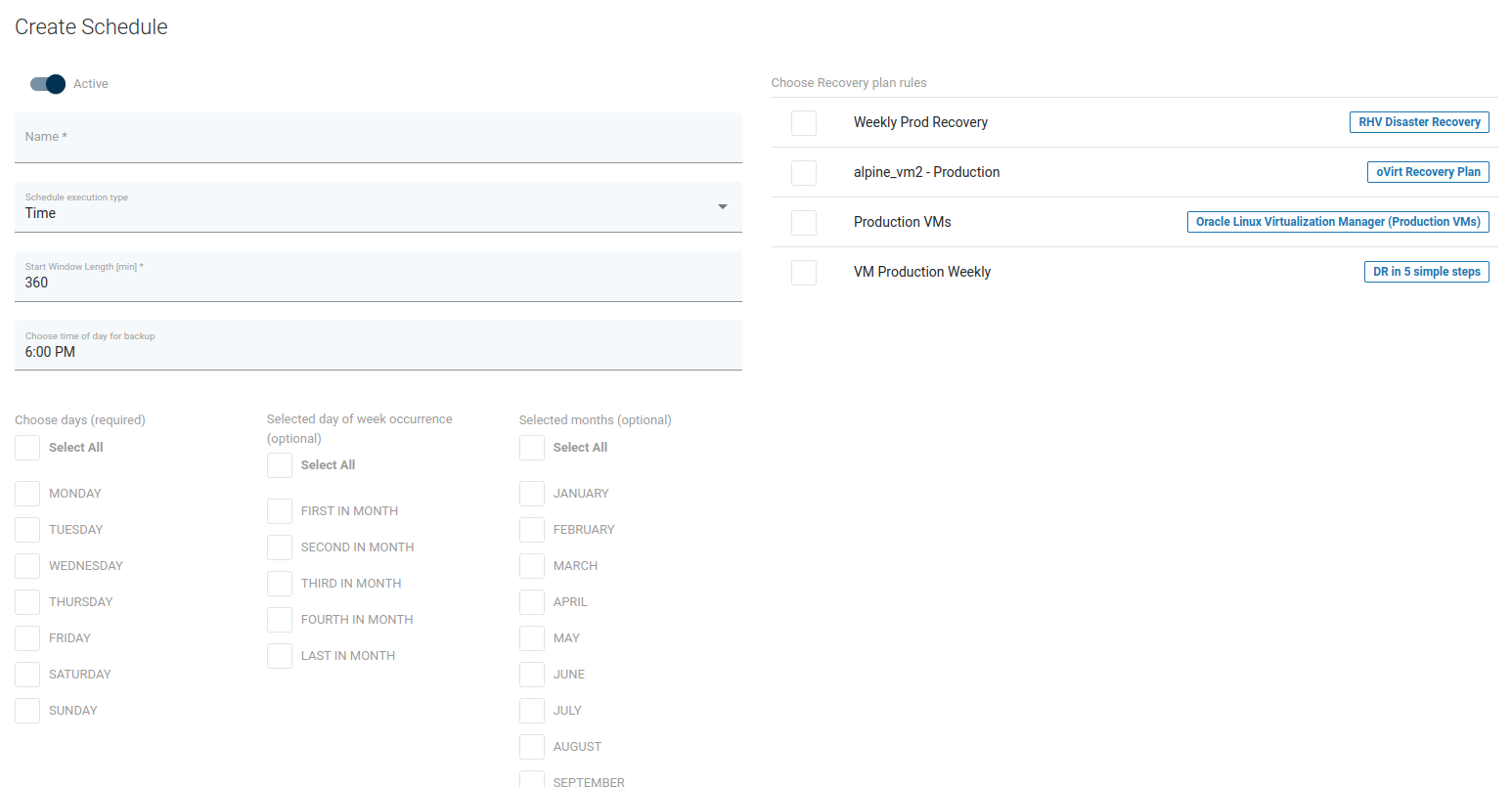 The Schedule defines when and on which days recovery plans should run. To define a new schedule use the