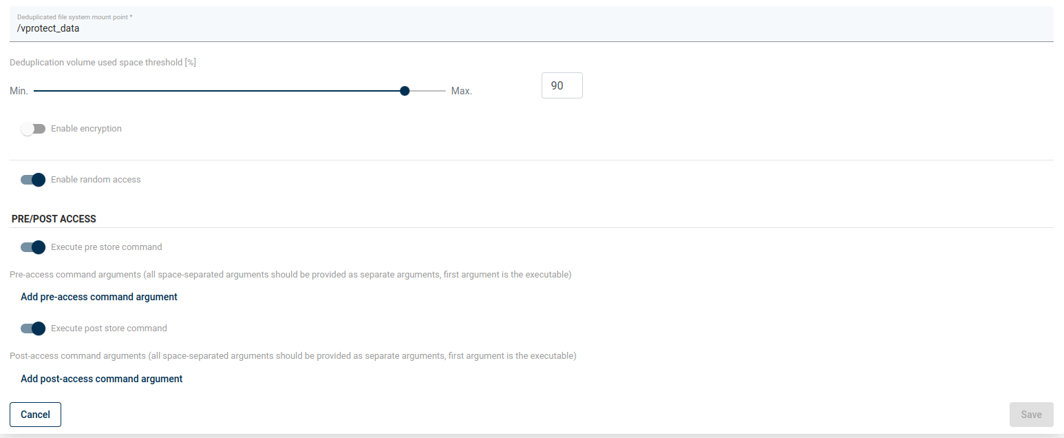 /etc/sudoers.d/directory to enable thevprotectuser to execute privileged script (like chown operations in some file system locations):%vprotect ALL=(root) NOPASSWD: /opt/vprotect/scripts/myscripts/privileged.sh - Open the "BACKUP DESTINATIONS" section from the left menu:
