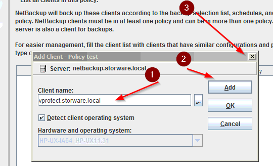 - Add the client to back up: