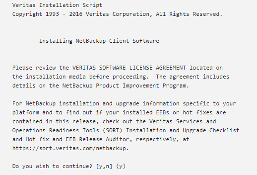 - Confirm the NetBackup client name and press Enter to continue.