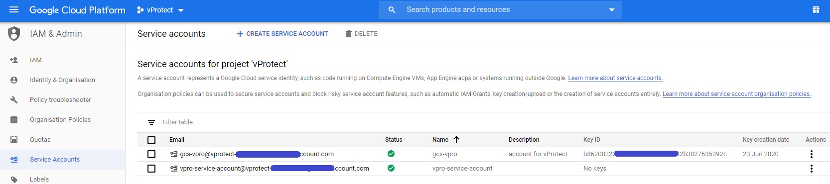 To generate an account key, click on the "three-dot" button next to your service account and then click on "create key".