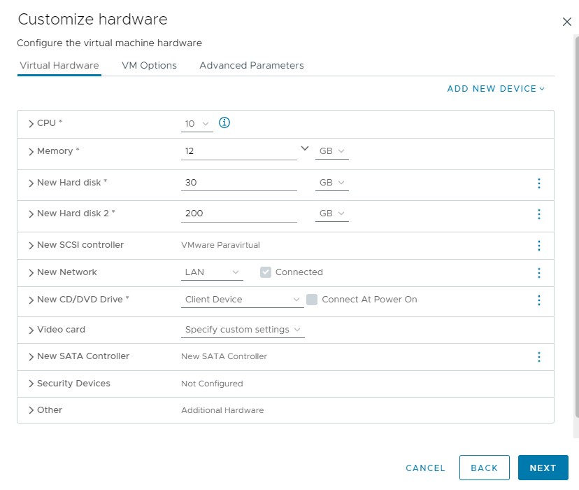 - Storage Requirements: At least two virtual disks are required for deployment: