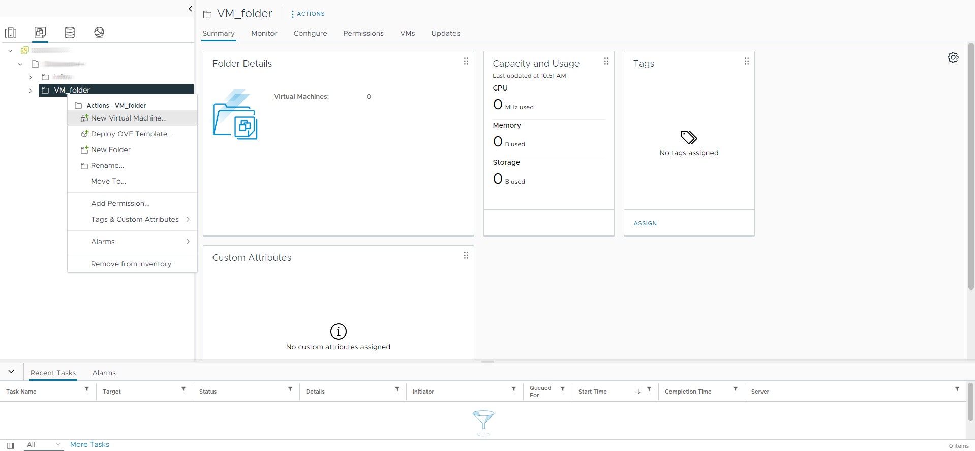 Create a New Virtual Machine: Right-click on the desired folder or datacenter within your virtualization platform and select "New Virtual Machine.