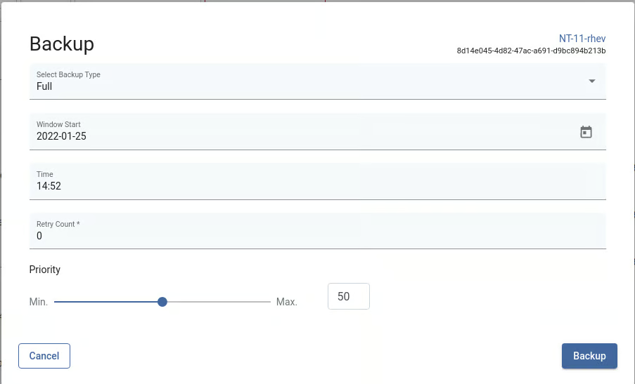 Note: to perform a manual backup, a target VE instance must be assigned to Backup SLA
