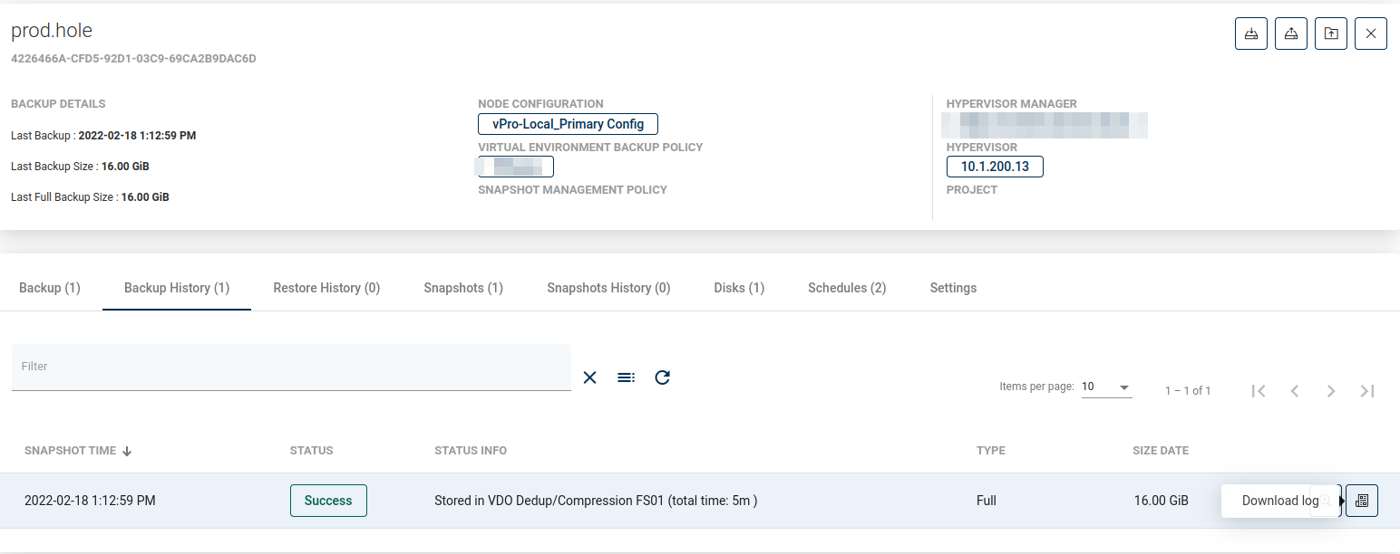 - the last snapshot kept on the hypervisor for the next incremental backup (if at least one schedule assigned to the VM has the backup type set to incremental)